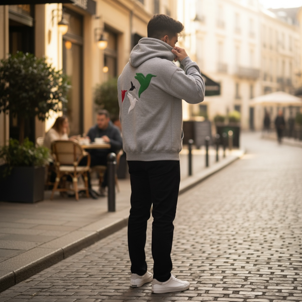 Introducing the Freedom Range Hoodie in Grey by Vox Gentè. Crafted with premium materials and designed for both style and comfort, this hoodie embodies the spirit of resilience and liberation. Featuring an emblem inspired by the colors of unity and hope – red, green, white, and black – it symbolises solidarity with those striving for freedom and justice worldwide. Make a statement and stand in unity with the cause.